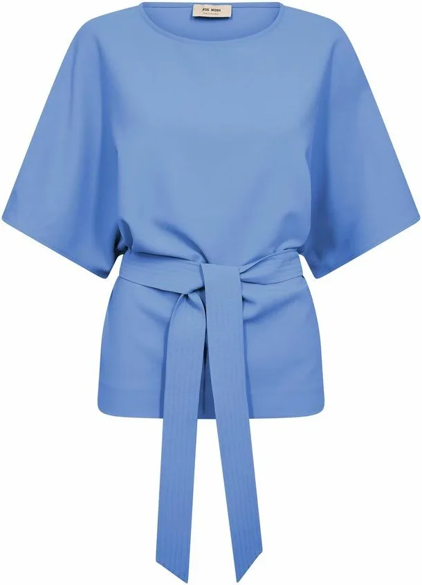- This elegant blouse is designed in a loose silhouette with half sleeves and a classic round neckline. It features a matching tie belt to highlight the waist and create a feminine shape. Style it with tailored pants or jeans for an effortlessly sophisticated look – perfect for both work and evening occasions.